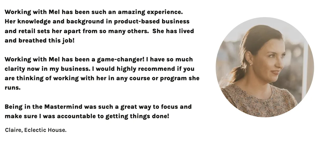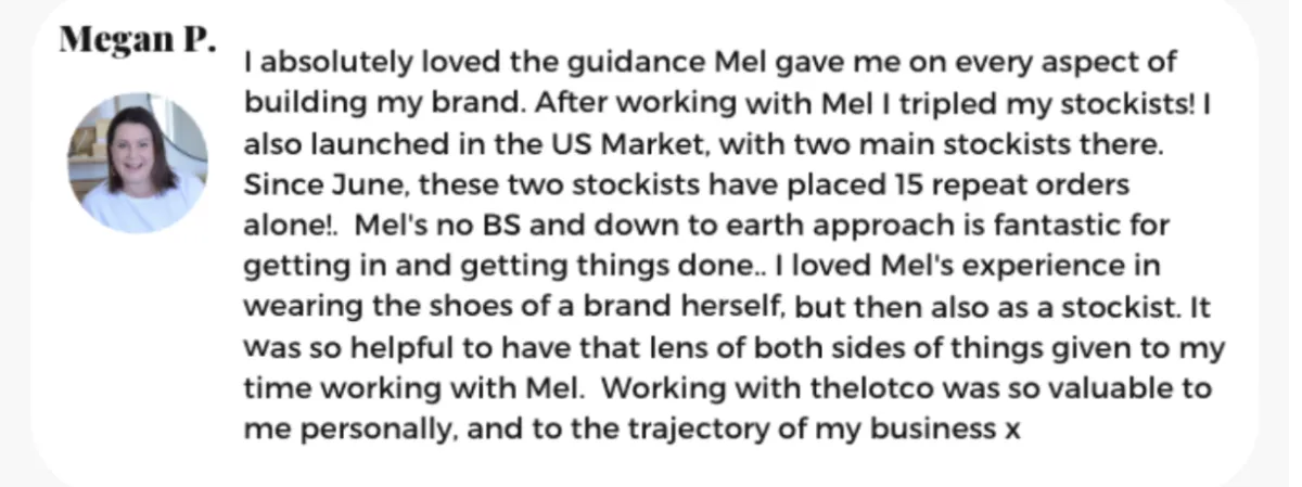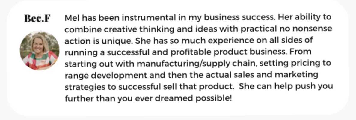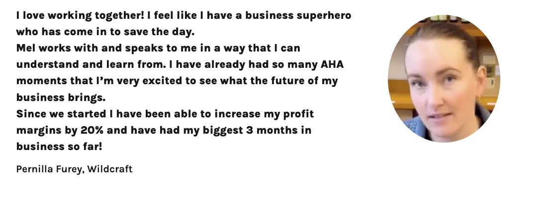 Mel helped us move from a backyard side hustle to a multi million dollar business and we have now outgrown our 3rd factory! She made sure we scaled with the right foundations, the right profit margins and that we understood the exact path required to achieve a profitable and sustainable business. We cannot thank you enough Mel for all your help.